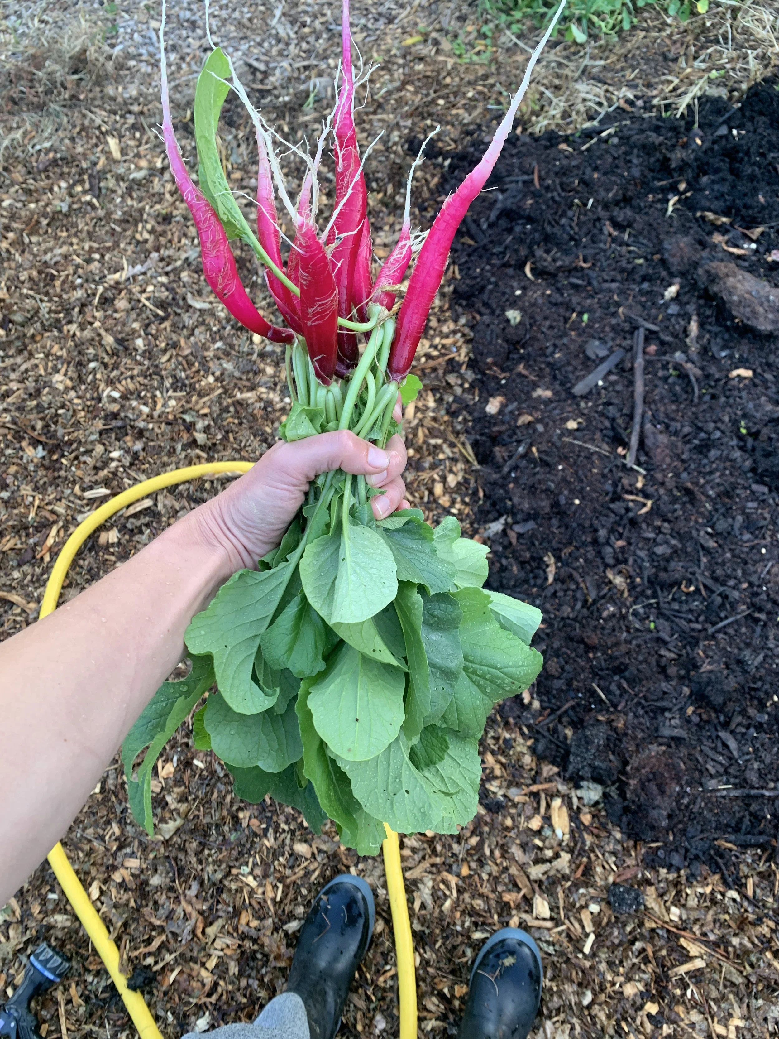 This radish has incredible flavor and vibrant color. Because it grows long and skinny, we can grow more of them in a smaller space improving yields per square foot. They do a great job loosening compact soil and are usually our go-to first crop in any new beds. The greens taste great when they’re young. This radish does well for us grown outdoors 3 seasons of the year since 2022, and did well grown in a greenhouse in the winter during a single trial.